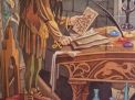 C'est par l'une de ces porte dérobé que l'on peut atteindre le repaire de Dworkin. Un tapis coloré couvre le sol de pierre, dune une pièce sans fenêtre encombrée de livre sur tous les murs et divers objets exotiques, éclairés par des globes de lumière suspendus haut dans les airs sans aucune attache. Un crâne trône sur la table au milieu du cabinet de travail. Au fond, deux portes. Près de la porte de droite, une longue table basse sur laquelle s'accumulent ouvrages et documents. Des objets bizarres occupent les espaces libres sur les étagères, les niches et les recoins curieux des murs : ossements, pierres, poteries, tablettes gravées, lentilles de verre, baguettes magiques et autres instruments mystérieux. La porte de gauche donne sur une petite chambre sans fenêtre mais avec une petite cheminée. En face une énorme porte renforcée de métal mène au fond de la grotte du Griffon de la Marelle Primordiale.